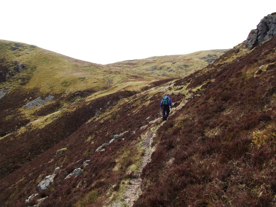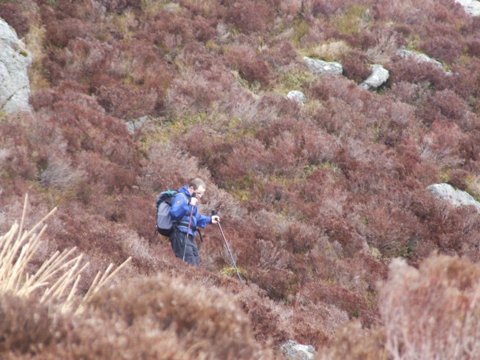 Choose your line carefully, as nearer the wall you’ll find the ground to be an ankle wrenching mix of loose boulders, moss and heather where none of your footfalls will be confident. Aiming further left and taking a direct line upslope seemed to work best.